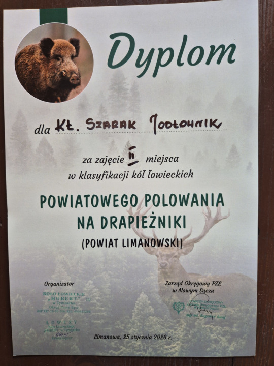 Zarząd Koła Łowieckiego 'SZARAK’ w Jodłowniku zaprasza na Walne Zgromadzenie Członków Koła Łowieckiego 'Szarak’ w Jodłowniku, które odbędzie się 25.04.2026 (sobota) w budynku 'Osady’ o […]