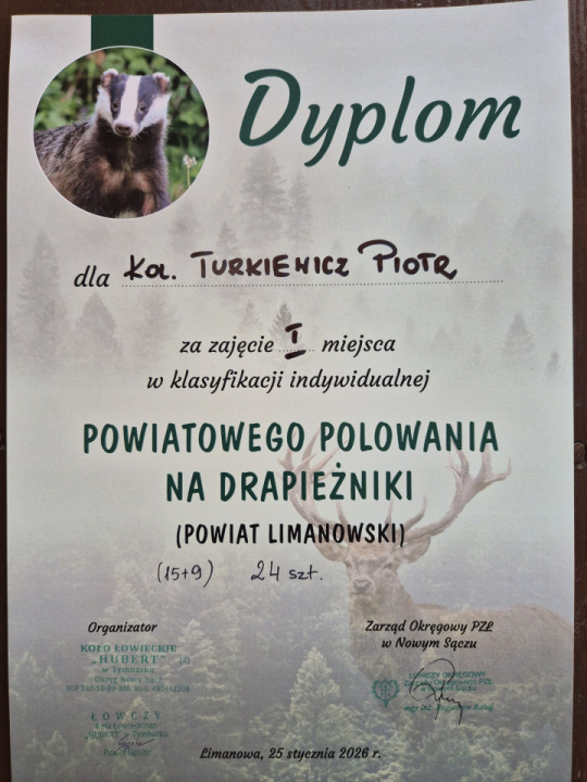 W tegorocznym polowaniu na drapieżniki Powiatu Limanowskiego uczestniczyło 8 kół łowieckich. Tym razem gościnnie 25 stycznia 2026 w Kole Łowieckim HUBERT w Tymbarku, które przyjęło na […]
